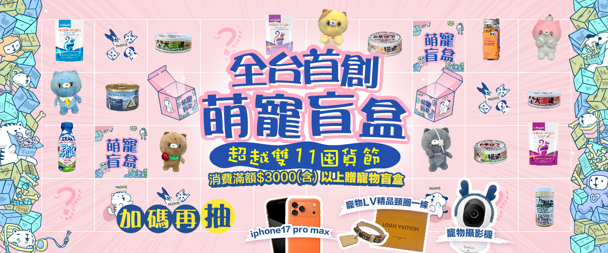 💖 還有滿額好禮:消費滿$3000(含)即可獲得驚喜寵物盲盒,讓毛孩開心滿足!
