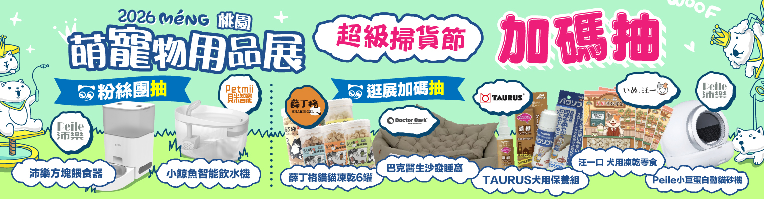 | 逛展抽 | Peile小巨蛋貓砂機 | 3/20(五)-3/23(一)展期四天逛展者,至桃園會展中心『大會贈品處』參加。 | 3/23(一) 18:30 |