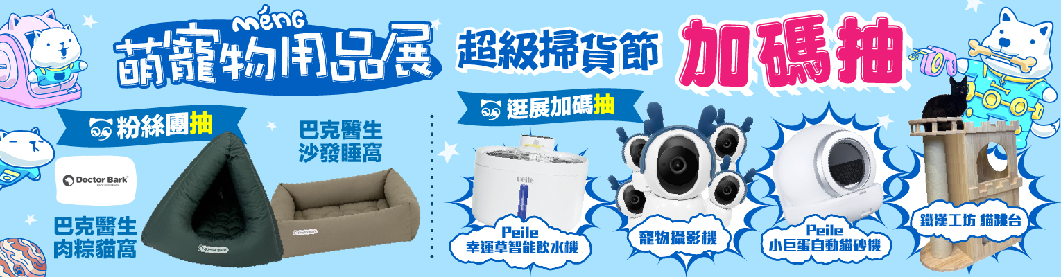 逛展抽豪禮:Peile小巨蛋貓砂機&鐵漢工坊 貓跳台&幸運草智能飲水機&寵物攝影機