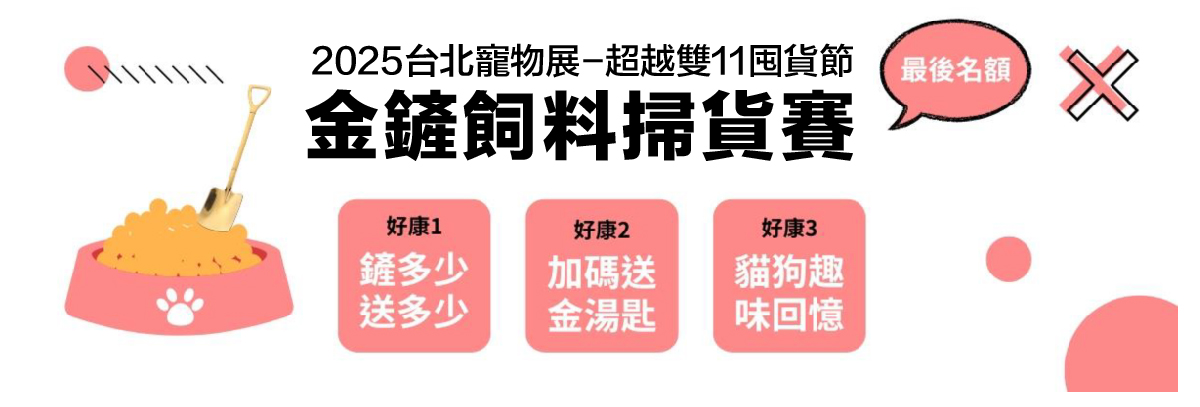 請於展覽期間您報名之場次2025/10/31(五)至11/3(ㄧ)您報名之時段(請提早15分鐘至「網路訂票領取處」出示QR Code憑證領取號碼牌),至台北世貿一館-萌寵物展舞台區,憑號碼牌參加飼料補給站,遺失視同放棄,恕不補發。