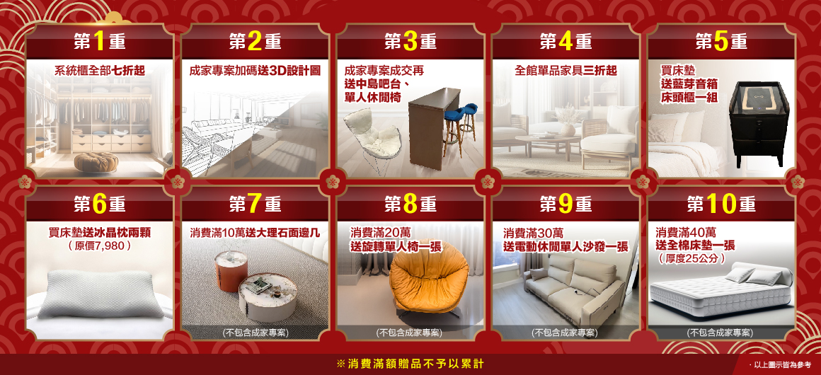 第八重:消費滿20萬送旋轉單人椅一張(不包含成家專案)