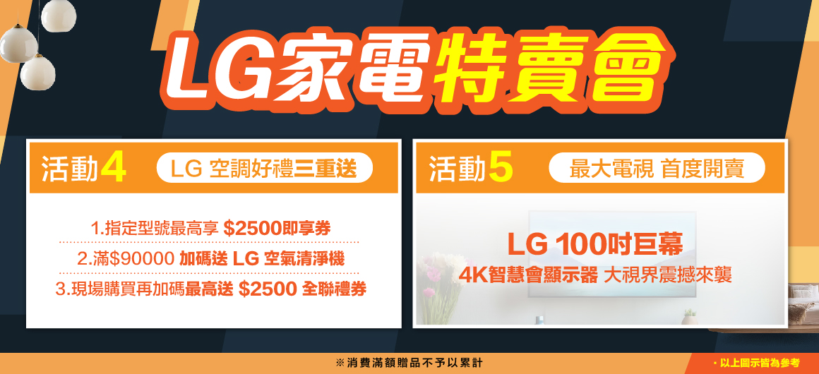 活動5:最大電視 首度開賣 LG 100吋巨幕 4K智慧會顯示器 大視界震撼來襲。